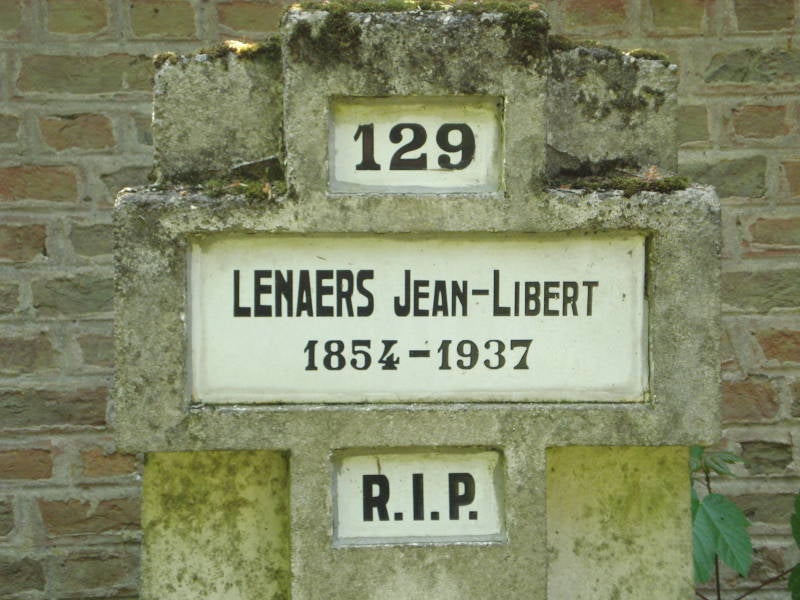 Kneippstraat 2, 3600 Genk Bidprentje Jean Libert Leenaers Grafsteen 129 waarop Lenaers i.p.v Leenaers te lezen is.